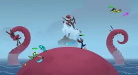 В процессе вам предстоит не просто брать меч и идти один на один с реальным игроком, но ещё и уклоняться от потенциальных угроз в виде вращающихся колес, платформ и не только. Также вашим врагом могут выступать металлические шары с шипами и любой другой элемент на карте.Вы сможете изменить внешний вид персонажа, а также использовать множество видов оружия при прохождении. Тут можно встретить кучу пушек, которые будут полезны при сражении 1 на 1. Это и ледяные глыбы, и боксерские перчатки, и даже снайперская винтовка. Какое именно снаряжение нужно решайте сами.