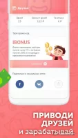 Вывод средств осуществляется на Qiwi или Юмани. Это простой способ пополнить баланс электронного кошелька. Минимальный запрос на получение от 1 рубля. Деньги приходят на счёт очень быстро, а дополнительную заявку можно оставлять после начисления бонусов и вознаграждений.Appbonus на Андроид уже доступен для скачивания на нашем сайте. Приглашайте друзей, показывайте им свой доход, повышая активность приложения, и зарабатывайте деньги. Приглашённые пользователи могут вводить специальный промокод, чтобы получить бонус.