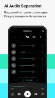 Для создания собственного минуса важно пользоваться функцией удаления вокала. Приложение старается всеми способами избавиться от голоса на имеющейся песне, после чего можно получить чистую музыку. Искусственный интеллект удаляет бас, фортепиано и прочий фон.Имеющийся трек можно использовать в качестве микса, добавлять дополнительные инструменты и не только. Сделать аудио проще в популярных форматах. Это могут быть MP3, AAC3, AAC и другие.