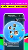 Можно пригласить друга, чтобы спеть дуэтом или присоединиться к участникам в интернете. Хотите спеть с известным артистом? Smule предоставляет такую возможность — в библиотеке есть звуковые дорожки, записанные звёздами, к которым можно добавить свой голос.