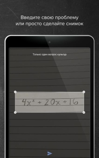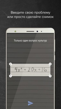 Принцип использования предельно понятен. Вводите условие с клавиатуры или фотографируете её через камеру смартфона. Интеллектуальная система считывает информацию, анализирует проблему и выдаёт готовый ответ.