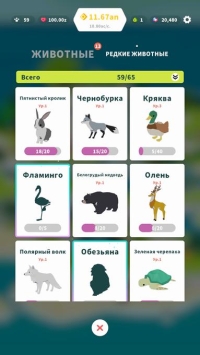 - Коллекция из более 100 видов фауны: кролики, лисы, еноты, коты, утки, совы, черепахи, олени, фламинго, морские обитатели