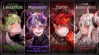 Kiss in Hell: Fantasy Otome – интерактивная визуальная новеллу в жанре «отомэ» от студии Storytaco Inc. Вымышленная вселенная фокусируется на разношерстной аудитории, предлагая романтическую историю с демонами-лордами в мрачно-фантастическом сеттинге. Центральная механика строится вокруг системы выборов, где каждое решение игрока влияет на развитие отношений с четырьмя главными персонажами: Мамоном (Жадность), Асмодеем (Похоть), Левиафаном (Зависть) и Сатаной (Гнев).