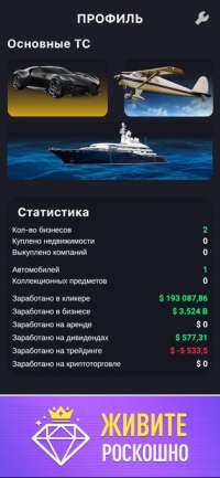 Коллекция включает приобретение предметов роскоши: премиальные автомобили (от спортивных до классических моделей), частную авиацию, яхты для водных приключений. А также артефакты высокой стоимости – картины, часы. Встроенные бизнес-советы обеспечивают руководящую информацию для каждого вида деятельности, снижая порог входа для новых пользователей.