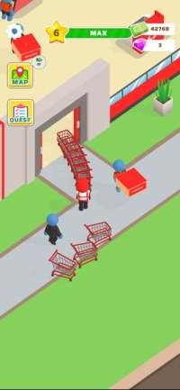Основные механики включают укладку и организацию товаров на полках, работу кассиром со сканированием товаров и обслуживанием транзакций, управление тележками и корзинами. Система развития предусматривает найм дополнительного персонала, улучшение навыков работников и расширение или модернизацию новых торговых зон. Idle-элементы позволяют магазину функционировать автономно, генерируя доходы даже в фоновом режиме.