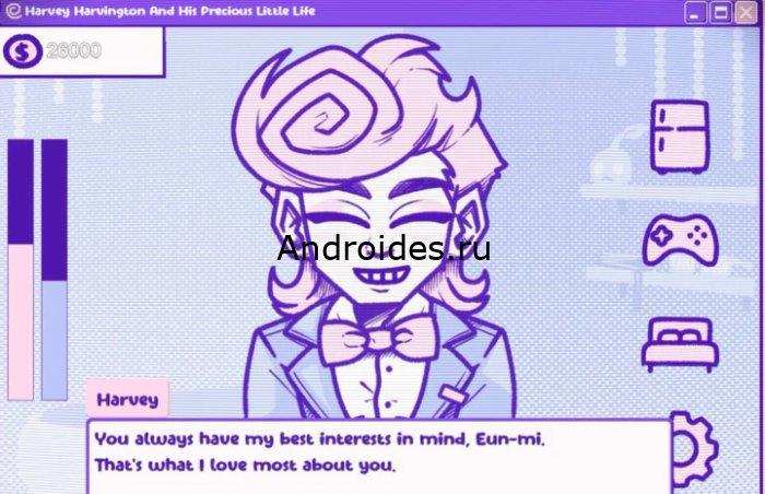 История разбита на семь дней (Day 1 … Day 7). Каждые сутки – тематическое испытание, в котором приходится ухаживать за Харви (Harvey Harvington) под управлением персонажа Эун-Ми (Eun-Mi). Необходим контроль двух показателей: уровень голода (Food Bar) и эмоционального состояния / настроения (Mood Bar).