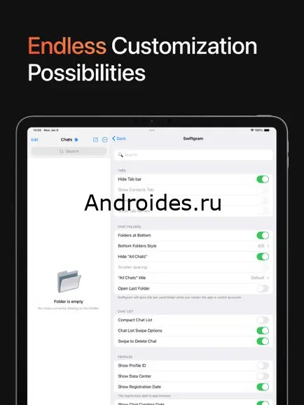 Общение без границ по собственным правилам. Скачивайте Swiftgram 11.15 (Мод Premium) на Андроид и превратите классическую версию мессенджера «Телеграм» в совершенную платформу для взаимодействия с миром вокруг.