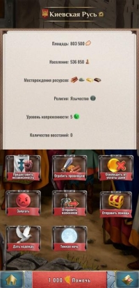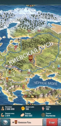 Еще на старте предусмотрена возможность выбора действующих стран: Русь, Византия, Франция, Япония, Польша, Норвегия. От выбора зависят стартовые условия, территориальные преимущества (или же слабости), амбиции. Развитие ведется с учетом экономики, торговли, армии, дипломатии и множества случайных событий (эпидемии, катаклизмы, восстания). Появляющиеся переменные превращают каждое прохождение в неповторимую шахматную партию, в которой от положения каждой пешки зависит судьба целого народа.