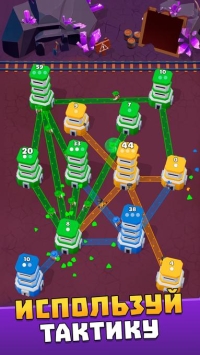 Между захватами важно стратегически выбирать, какие цели атаковать, а какие укреплять. Ресурсы, получаемые с контролируемых башен, тратятся на апгрейды: усиливаются оборонительные характеристики, повышается скорость производства юнитов или разблокируются специальные механики, например, «Ускорение» или «Укрпление».