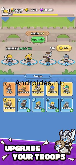 Прогресс осуществляется через систему улучшений и эволюции: можно повышать уровень отрядов, превращая обычных пехотинцев в элитные войска, а лучников – в королевских рейнджеров. Ветви развития различаются в зависимости от конкретных типов бойцов, а потому разработчики рекомендуют беспрерывно экспериментировать.