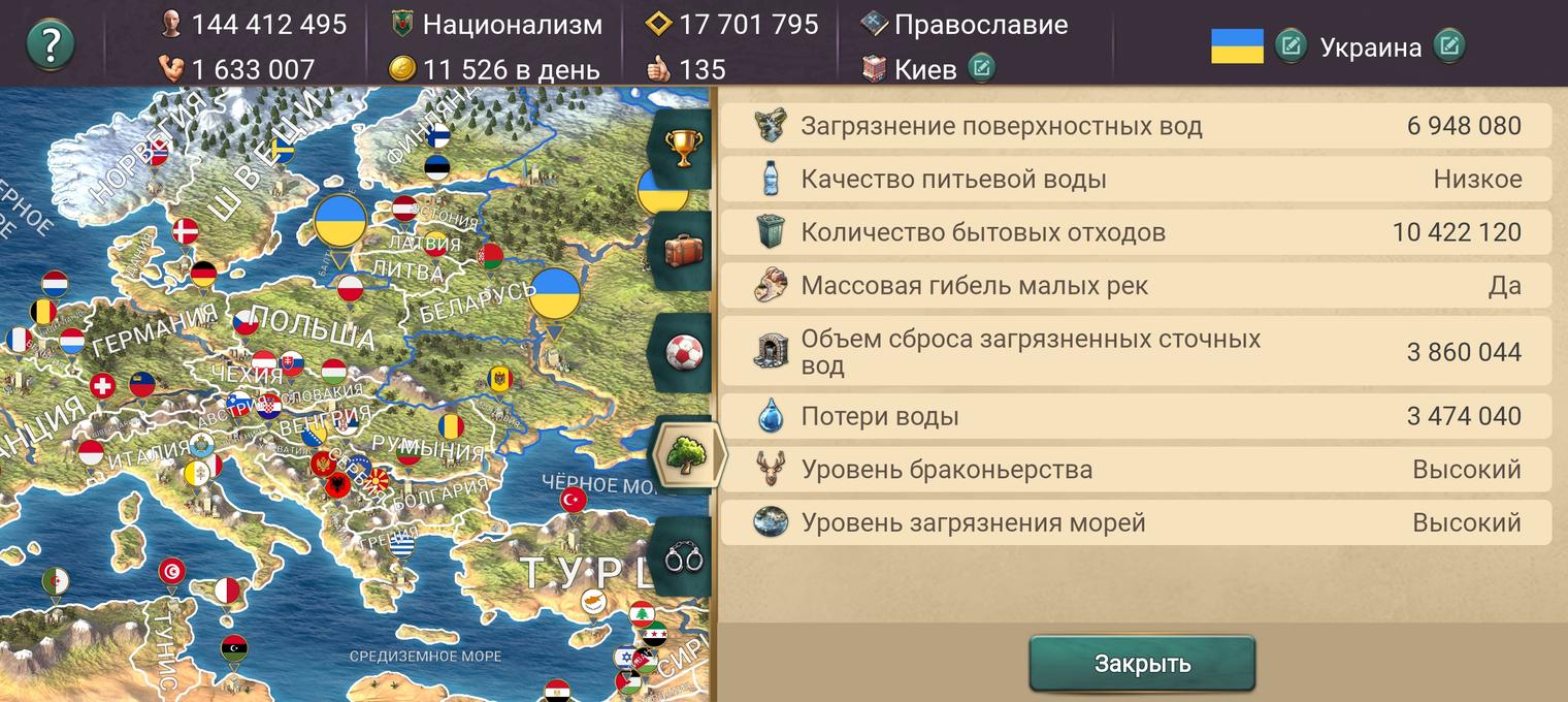 - Многопользовательские элементы: живой чат и возможность сравнивать накопленные достижения в мировом рейтинге по уровню ВВП, армии и населения;