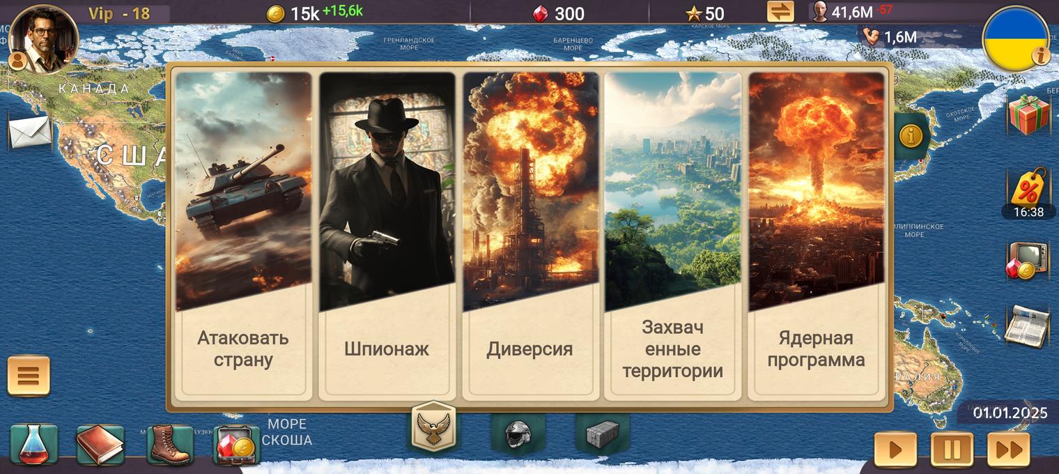 Экономический блок позволяет не только добывать ресурсы вроде нефти, золота и урана, но и выстраивать сложные торговые цепочки, бороться за рынки сбыта или управлять инфляцией через Центральный банк. Военная составляющая значительно расширилась: теперь разработчики разрешают отправлять в войсках, контролировать сражения в пошаговом режиме, проводить диверсии, засылать шпионов для кражи технологий. Никто не мешает даже развивать собственную ядерную программу в формате высшей меры сдерживания.