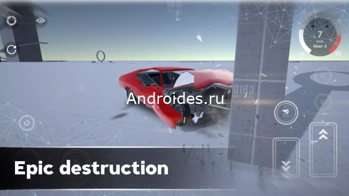 - Свобода творчества: продуманные карты-полигоны с доступом к редактору для организации безумных аварий невиданного для мобильных платформ масштаба;