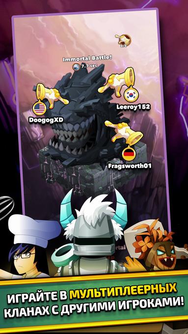 Кроме активного прогресса предусмотрен и пассивный – в фоновом режиме выдаются награды, очки опыта, снаряжение. Главное – хотя бы иногда заглядывать в меню, распределять награды, редактировать набранную команду. Альтернативный вариант продвинуться по сюжету – найти союзников. Система асинхронного PvPпредлагает проводить совместные рейды, активировать битвы между кланами, призвать и сразить Бессмертных. Тысячи неожиданных возможностей ради эксклюзивных трофеев и наград высшей пробы.