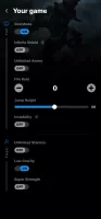 При этом пользователю не нужно искать их в системе: после установки WeMod автоматически сканирует телефон и показывает доступные варианты активации читов. Учтите, что активация функций работает только в сингл плее — в сетевых режимах это приведёт к блокировке аккаунта. Управление читами осуществляется простым переключением тумблеров «Вкл.»/«Выкл.».
